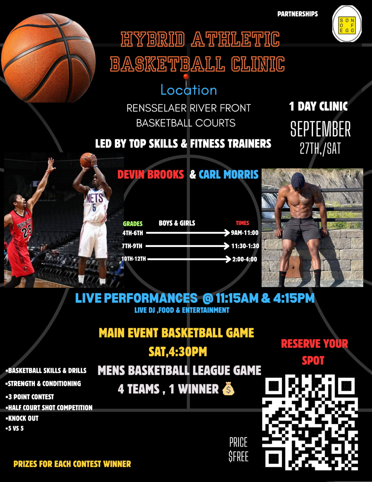 I am reaching out to invite your support for our upcoming Youth 1 day Hybrid Basketball Clinic, which will take place September 27th at the Rensselaer Riverfront Park. Based on Attendance we will reevaluate to make more clinics for the youth.